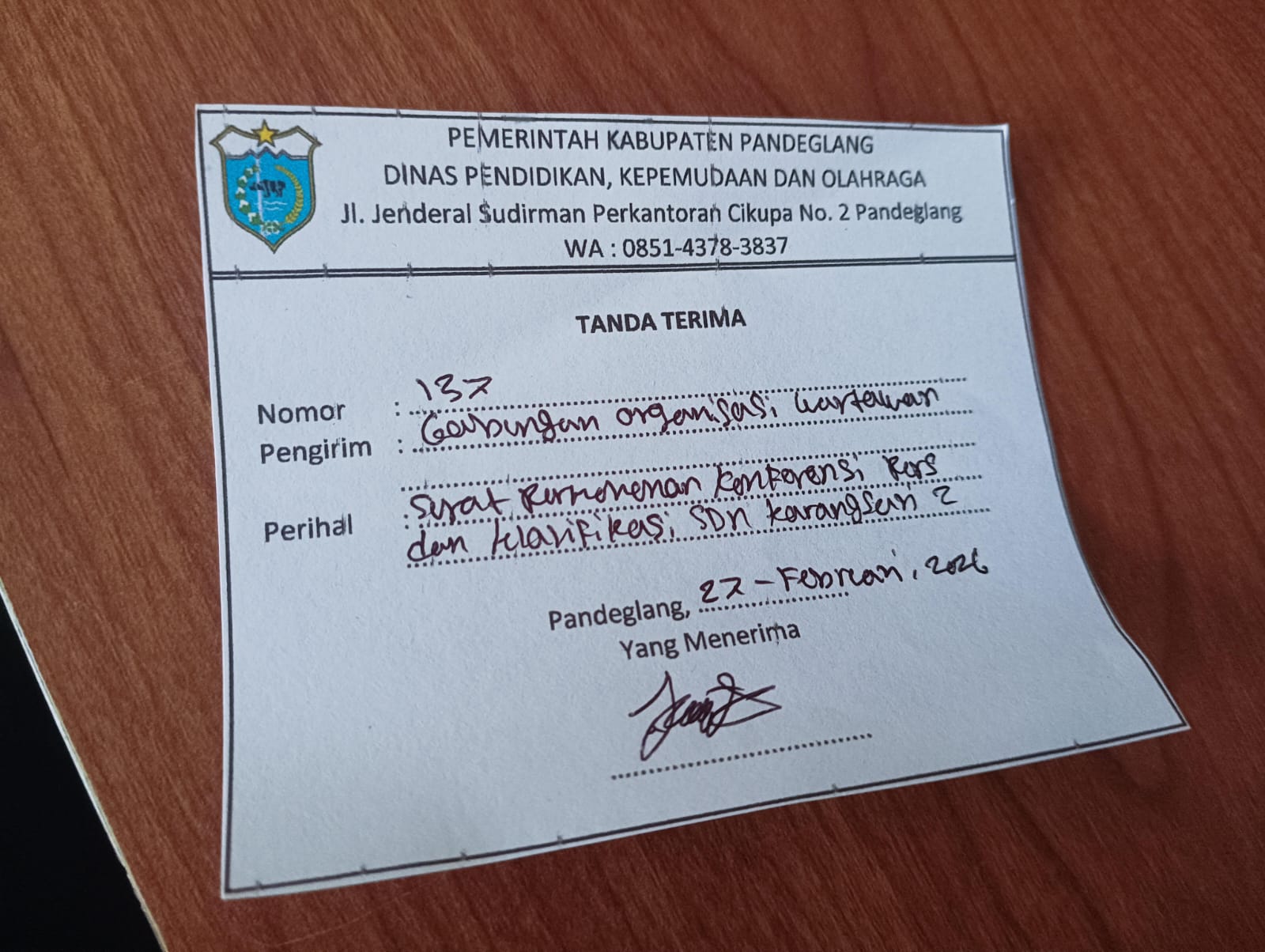PANDEGLANG|Wartanusantara7.com – Gabungan Organisasi Wartawan Indonesia dan Lembaga (GOWIL) resmi melayangkan surat permohonan konferensi pers dan audiensi kepada Dinas Pendidikan Kabupaten Pandeglang terkait dugaan penyimpangan pengelolaan Dana Bantuan Operasional Sekolah (BOS) di SDN 2 Karangsari, Desa Karangsari, Kecamatan Angsana, Kabupaten Pandeglang, Provinsi Banten.